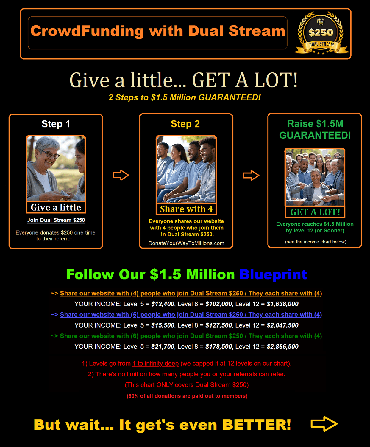 3 (Share our website with your referral link) Share with 4 or more & raise $1.5M! DonateYourWayToMillions.com